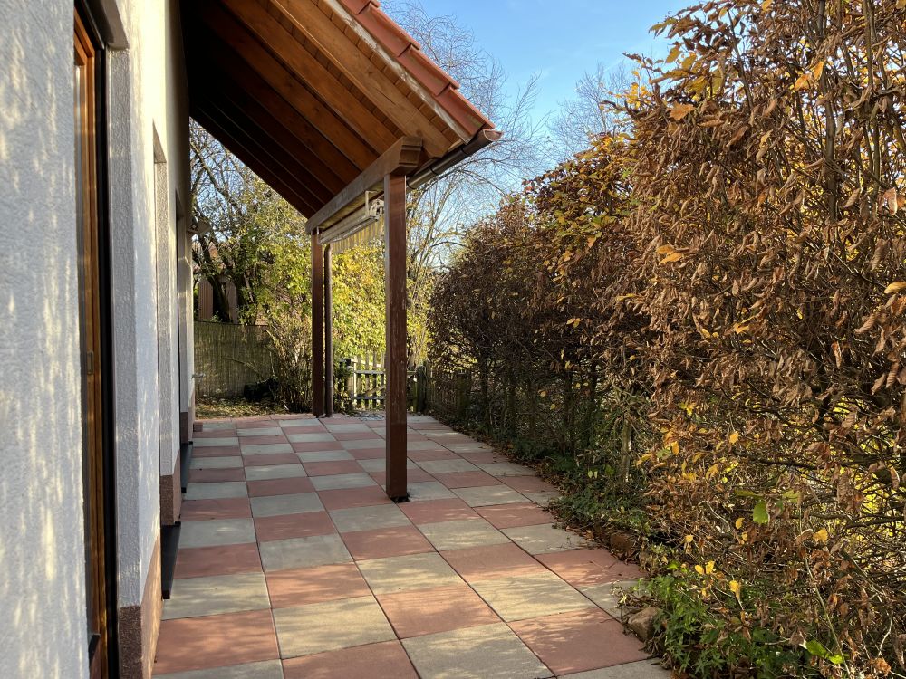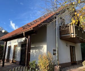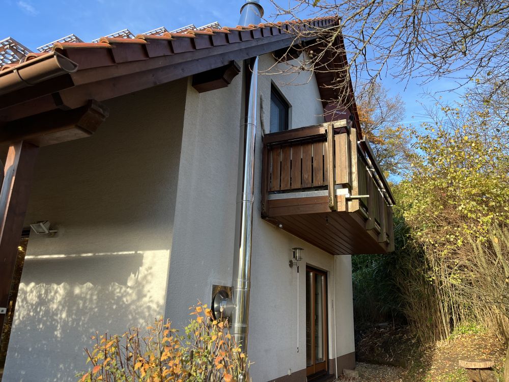Dieses freistehende Einfamilienhaus mit sonnigem, nach Südwesten ausgerichtetem Grundstück wurde 2003 von der Fa. Zenker in einer Holzständerbauweise errichtet. Im Erdgeschoss befinden sich der Eingangsbereich mit Gäste-WC, ein Flur, die Küche sowie das gemütliche Wohn-Esszimmer mit Zugang zu den beiden Terrassen und dem Garten. Zudem steht ein kleiner Abstellraum mit der Heiztechnik zur Verfügung. Das Dachgeschoss bietet 3 schöne Schlafzimmer, zwei davon mit Zugang zum Balkon, ein Badezimmer mit Dusche, Badewanne und Waschmaschinenanschluss. Das Grundstück ist ca. 469 m² groß (Süd-Westhanglage).