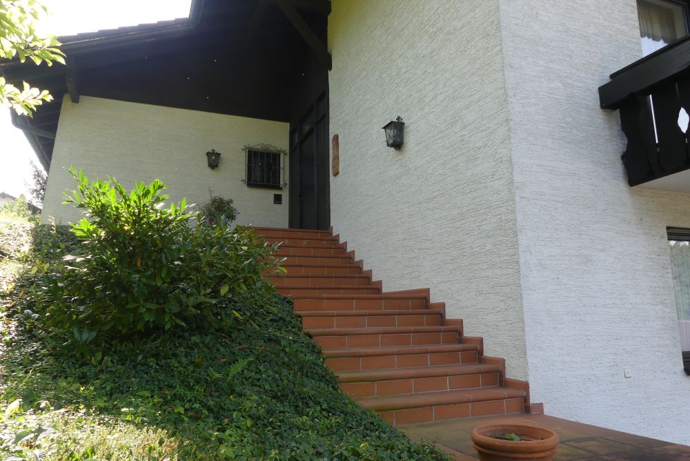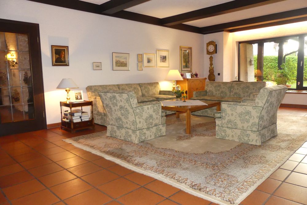 In bevorzugter und sonniger Wohnlage befindet sich dieses freistehende Wohnhaus mit einer großzügigen Wohnfläche von ca. 270 m² auf einem weitläufigen Grundstück von ca. 1.178 m². Das Anwesen überzeugt durch seine durchdachte Raumaufteilung, die vielseitige Nutzungsmöglichkeiten und den wunderschönen, ebenen Garten in Südwestlage. 1.OG/EG/Hauptebene Über die repräsentative Eingangsdiele mit einer imposanten Holztreppe gelangen Sie in den großzügigen Wohnbereich mit Zugang zur überdachten Terrasse und einem offenen Außenkamin. Das angrenzende Kaminzimmer bietet ebenfalls einen direkten Zugang zur Terrasse und zum weitläufigen Garten. Weiterhin befinden sich auf dieser Ebene ein Esszimmer, eine Küche mit Speisekammer und ein Gästezimmer/Büro. Alle Räume verfügen über einen Zugang zum Balkon. Eine nicht ausgebaute Schwimmhalle bietet zusätzliche Gestaltungsmöglichkeiten. Ergänzt wird das Raumangebot auf dieser Ebene durch eine Garderobe und ein Gäste WC. Im Dachgeschoss erwartet Sie das Elternschlafzimmer mit direktem Zugang zum Wannen-/Duschbad und einem Ankleidezimmer. Eine Diele führt zu zwei Kinderzimmern, einem sep. Duschbad sowie ein Studio/Büro. Auch hier verfügen alle Schlafräume über einen Balkonzugang. Das Erdgeschoss/Kellergeschoss beherbergt den Zugang zur ehemaligen "Praxis" mit eigenem Eingang, Flur, zwei Zimmer, Küche, Duschbad und WC. Darüber hinaus stehen eine große Garage, ein Fahrradkeller, ein Hobbyraum, ein Kellerraum, ein Weinkeller, ein Hauswirtschaftsraum und ein Heizungsraum zur Verfügung. Das gepflegte, ca. 1.178 m² große Grundstück mit herrlicher Südwestlage, bietet viel Platz für Erholung, Spiel und Freizeit. Die überdachte Terrasse mit einem offenen Kamin runden das Angebot ab und lädt zu geselligen Stunden im Freien ein.